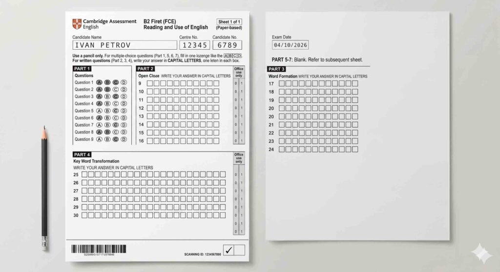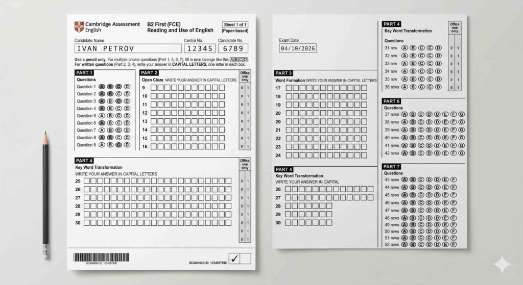 Пенка (The Pencil): Reading, Use of English и Listening заполняются только карандашом. Writing — ручкой.