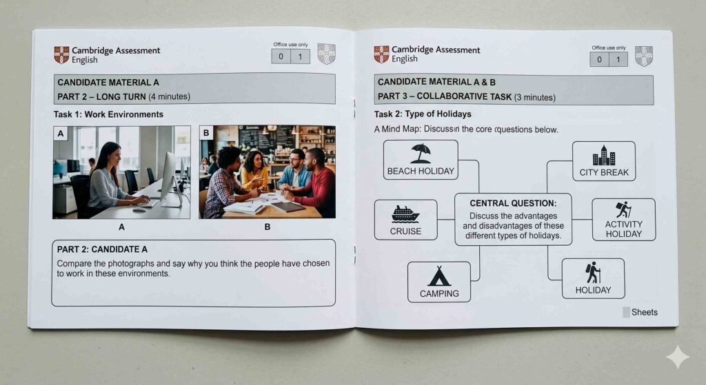 Секции Part 3 и Part 4: Отдельные блоки для фиксации баллов за совместное обсуждение с партнером и финальную дискуссию с экзаменатором.